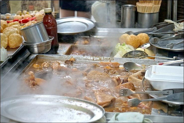 附近的美食何其多,三元粥品、杏香園(甜湯)及這家明記牛什都是人氣推薦必吃!這家明記在新馬路邊德成按對面,算是此行最大的遺憾啊~~因為走過去時真的是聞香到不行!靠近拍照更是快凍未條,有夠香的,一整鍋滿滿的牛雜與辣咖哩魚蛋隨著白煙嬝嬝的載浮載沉,老闆的手沒有停過,一直在忙著剪與打包,這種街邊小食最令人懷念了~~我們幾個甚至打定主意,最後一天的自由時間死也要坐計程車專程來買,誰知道後來自由時間也no速