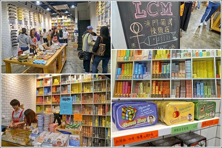 瑪格請我們注意腳下所踩的是澳門特有的黑白地磚,上面有各種不同的圖案喔,然後這家LCM澳門葡式辣魚店是目前澳門最潮的手信,可以把罐頭魚做的這麼時尚也確實是賣點,同行友人說櫃台後面的陳列方式很像藥品,聽說這裡共陳列了三百多款罐頭,只是凱莉哥沒買罐頭,竟包了三瓶葡萄牙紅酒,這次出門才發現她是酒女XD