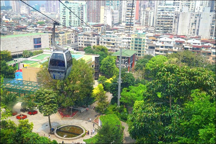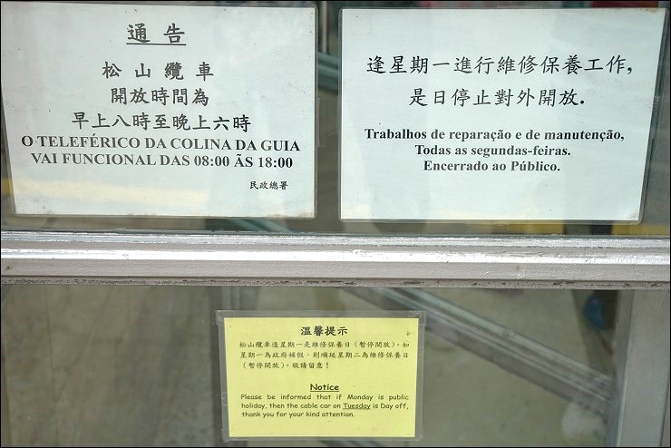 聽說這是全世界最短的纜車,朋友說她上次坐姿勢還沒橋好要拍照就到了...這裡是澳門半島最高峰東望洋山之巔,可以俯瞰整個半島,風景優美,炮台上建有一個燈塔及小教堂,教堂內的拱頂和牆身繪有彩色壁畫,繪畫技巧融合中西藝術,可惜裡面不能拍照,凱莉哥很認真的看完簡介說明,再向我好好講解了一番,看來我去歐洲逛各大博物館與教堂時跟著她就對了~~然後啊,下山的時候三傻又出槌了,到底發生什麼記得去看番外篇。