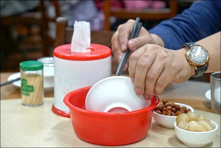 這是Sandra朋友開的火鍋店,地址上寫地下指的是一樓喔,跟台灣的樓層意義不同,真有趣!除了字面上的差異,飲食衛生習慣也有所不同,上菜前桌面上備了個熱水盆,是給客人用來燙一下碗跟筷子的。