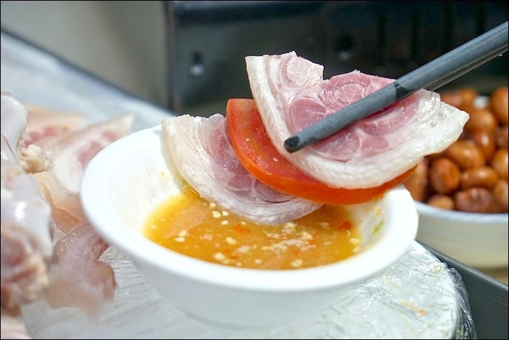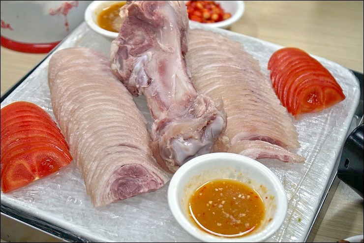 這家火鍋店生意之好不是沒道理的,才上沒幾道菜就收服了我們的心,這個叫冰豬手,原來在港澳地區他們不叫豬腳,叫豬手哩,以酒入味的冰鎮薄片豬腳與蕃茄及特製沾醬一起,簡直無敵開胃哩~~