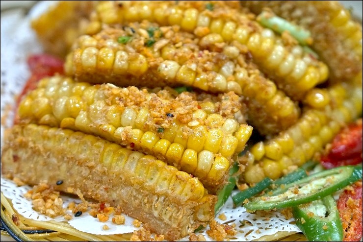 後面幾道熱炒上來我旁邊的凱莉哥快跳起來了!道道精彩美味,尤其是那道椒鹽粟米,她嘖嘖稱奇,回台灣之後馬上如法炮製,真的很有實驗精神!當天點的菜色有椰靑雞、游班(大推)、椒鹽淮山(大推)、海鮮菇醬爆牛展絲(推)、鮮麻辣煮牛肉(推)、翅湯雞腳骨煲(大推)及泰式海鮮大聯盟(激推),當天只有那個椰子雞我覺得還好(那盤沒吃完),其他幾乎大家都說讚!