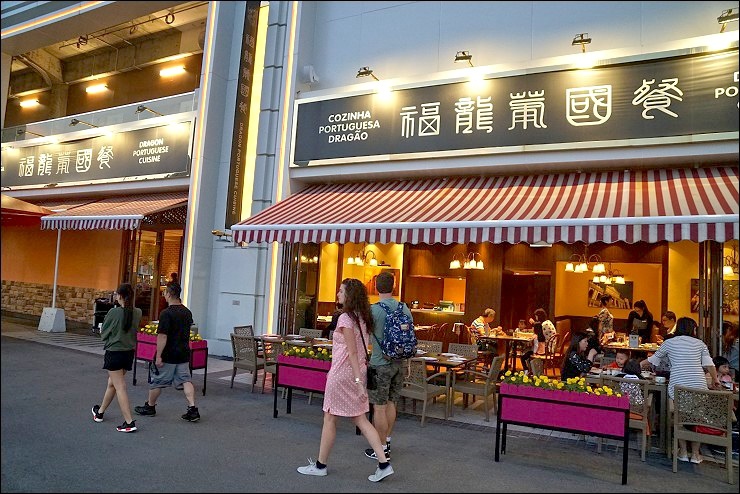 假如你在澳門沒什麼時間逛跟吃(可能身陷賭場出不來XD),卻想要利用最短的時間一口氣吃到好多名店,銀河百老匯美食街絕對可以滿足你,整條街頭美食收錄了40多種澳門及亞洲特色美食,有點類似我們台灣夜市的概念,從特色小吃至米芝蓮推介餐廳都有,一定要空著肚子從街頭吃到街尾,之前介紹過的唯一僅存的炭燒最香餅家分店就在此!我們有在這裡享用一餐,是從添好運的巷子旁走進去的福龍葡國餐。