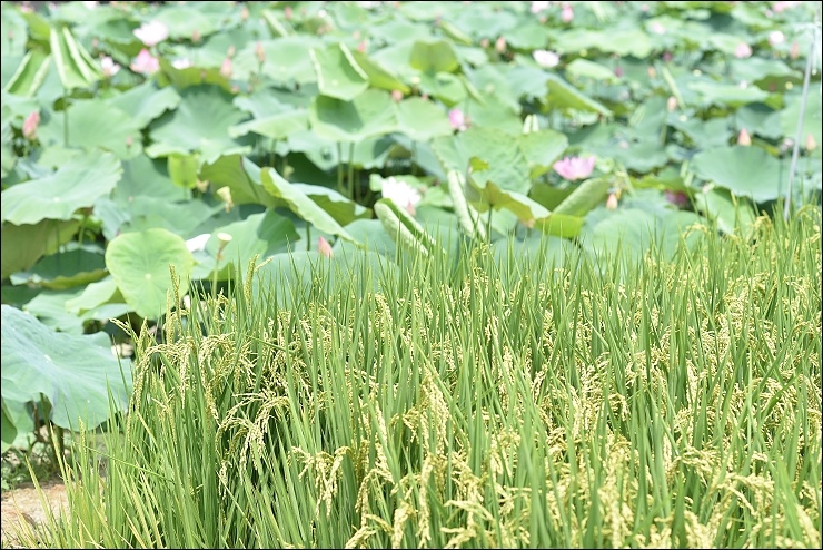 雖然這次大叔攝影美食一日快閃團的主要目標是赤中寺夢幻石斛蘭瀑布,但開車經過白河蓮花大道和蓮花公園附近,鄉間小路沿途都是美麗的蓮田稻田,還是忍不住停下來按個幾張快門,這個季節除了夏荷盛開之外,還有稻浪當背景。不過南部的太陽實在太毒辣,蓮花田又無遮蔽物,大叔拍個幾張就承受不了太陽的過度熱情,上車快閃轉進赤中寺夢幻石斛蘭瀑布。