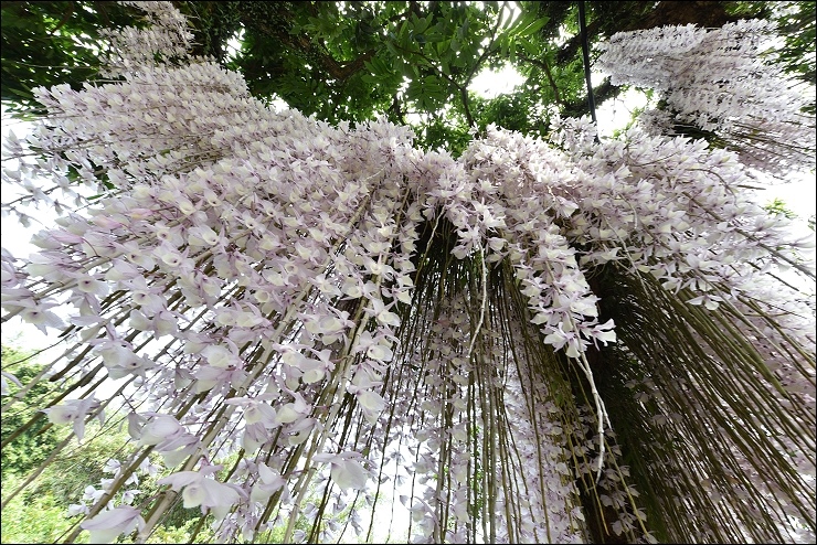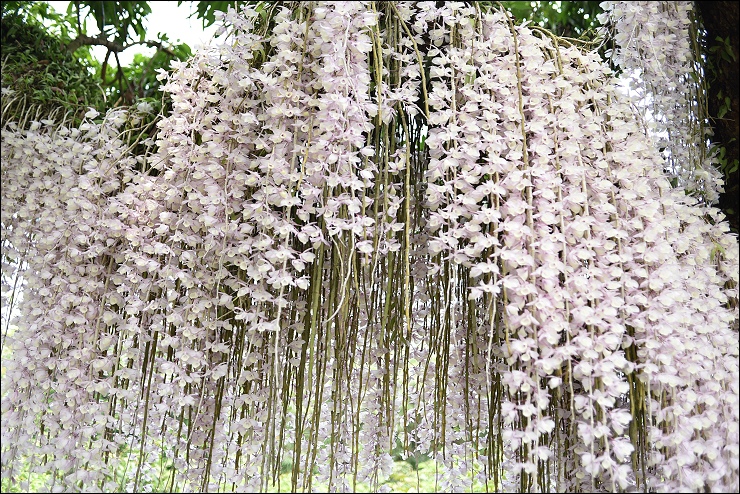網友說本周末為石斛蘭瀑布大滿開期,2017/5/12這天的花況實拍只能說花況大爆發!由下往上遠觀拉近隨便拍都很夢幻,就像ALEX大叔說的,難得一見石斛蘭瀑布,氣勢不輸日本足利花園紫藤!(如果自動忽略瀑布的面積啦~~~)
