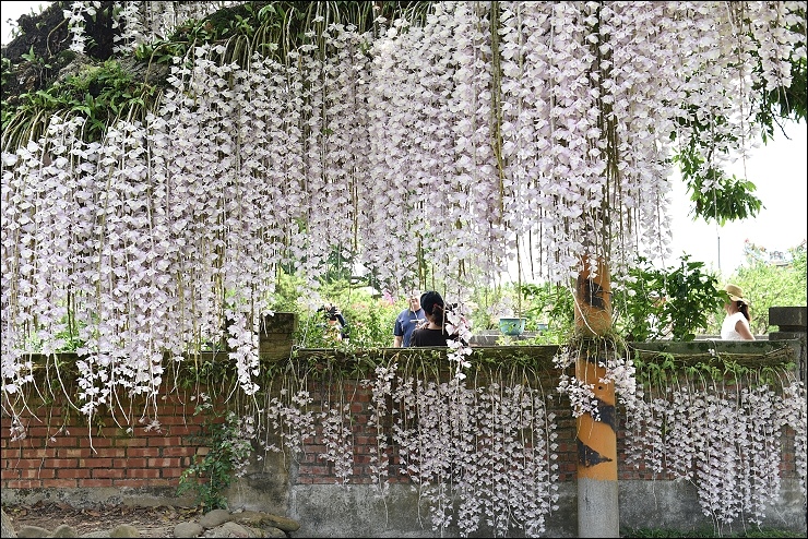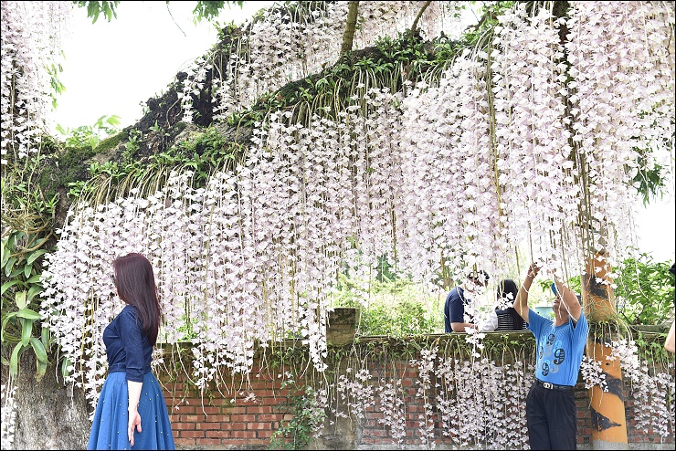 南投中興新村光明三路石斛蘭大道、 嘉義番路鄉佳鄉庭園餐廳和台南白河赤中寺,台灣南投嘉義台南三大石斛蘭瀑布賞花景點陸續傳來盛開的消息,其中大叔攝影團最感興趣也是最夢幻的就是台南白河赤中寺,紅磚老牆加上掛滿石斛蘭花海瀑布的老樹真的很好拍!(要抓一下遊客交替拍照的空檔)
