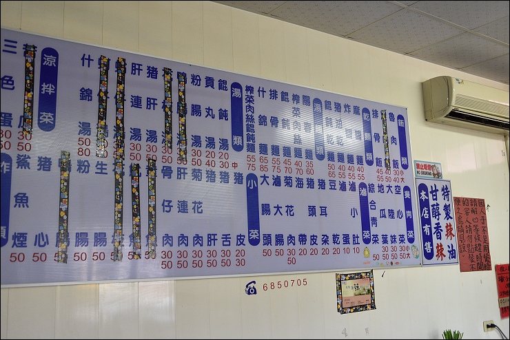 另一家白河陽春麵是白河在地水河哥大力推薦!這間也是要避開用餐時間來比較不用等,菜單上什麼都有賣,招牌是陽春麵、臭豆腐和排骨飯。
