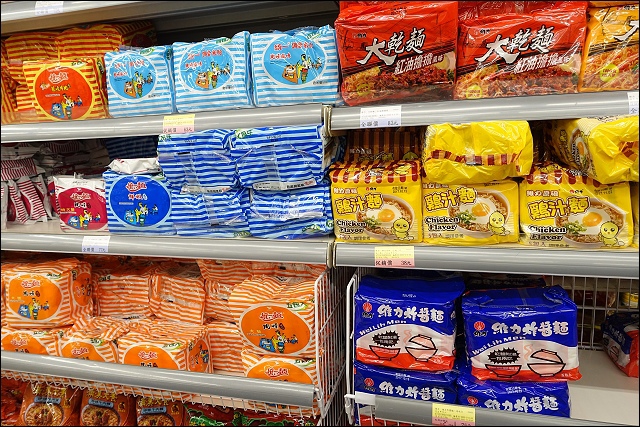 泡麵也是必備,統一鮮蝦麵、維力炸醬麵、滿漢大餐跟拉麵道輪著買。