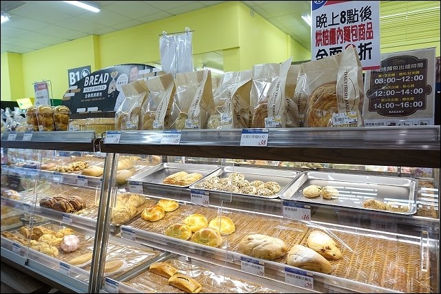 小姑我結婚後住樹林,家附近公園前的全聯麵包區都少少的,板橋娘家附近這間全聯的麵包區很誇張,滿滿的吐司不說,還有每天三個時段出爐的新鮮麵包,是把麵包店搬進全聯哦!