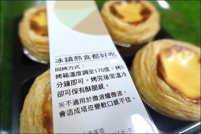 半月燒聽說很好吃,但野馬妹要吃蛋塔,四顆入的烤金黃蛋塔65元,冰過後吃內餡不夠嫩,外皮也軟軟的,進烤箱烤過之後,起皮有酥,內餡口感有提升,不過烤的時間跟熱度要掌握好才不會外熱內冷。
