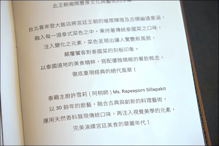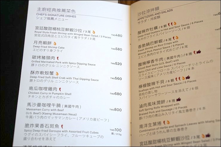 我因為要拍照需要光線,被安排在明亮的靠窗包廂位,這裡的主廚阿桐師依循泰國各區特有的在地風情,融匯創新與傳統的廚藝技巧,交織出觸動人心的感動滋味,這次主要來試幾道新推出的菜色。