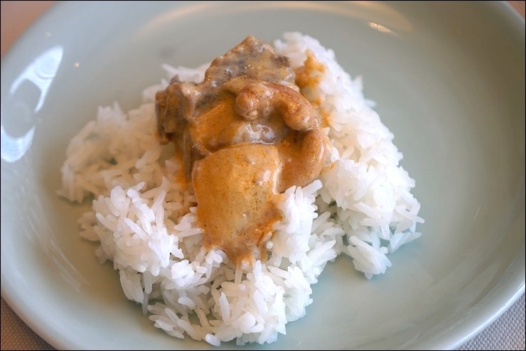 服務員有詢問我們是不是直接照菜單上的辣度標示是做,我們回答是,沒想到馬沙曼咖哩牛在菜單上是沒有辣的,所以小朋友來也可以點這道喔!不過我覺得帶點小辣會更下飯,所以失策啊失策。選用美國牛肉的牛腩部位去燉煮,肉質軟嫩又帶點嚼勁,有咖哩很容易失控一直扒飯,金害。