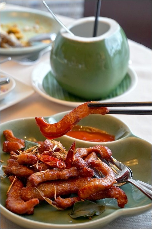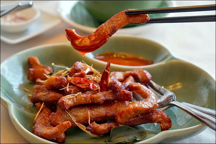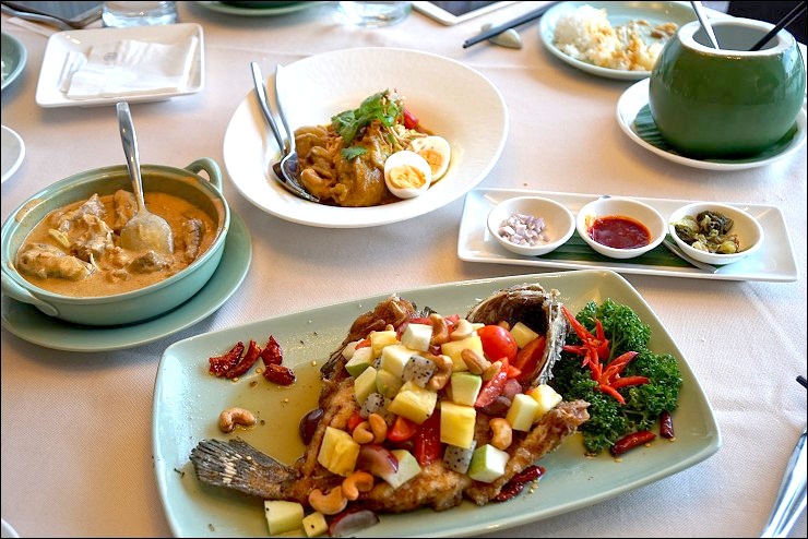 上次來台北喜來登飯店是吃地下一樓的辰園,他們家的港點我喜歡,這趟換嘗二樓的SUKHOTHAI泰式餐廳,之前曾經去他們館外的新光信義店吃泰式火鍋,留下很好的印象,所以對於本季推出的新菜色抱以相當大的期待,畢竟夏天這麼熱,真的會想吃又酸又辣相對開胃的泰國菜啊~~這次特別帶了娘家媽媽一起來試菜,順便四位媽媽一起補慶祝母親節,好幾道阿母都大讚好吃,主要以傳統泰國風味為基底,並針對台灣人口味做了些許微調,所以這裡的泰國菜口味感覺比較溫和,很合我阿母的胃,脆炸果香石斑魚整條被啃得精光,一點都不剩,清邁咖哩麵加酸菜加辣油滋味多變大推,另一道馬沙曼咖哩牛也好吃,可惜沒辣度不過癮,如果口味上有比較偏好的酸辣記得事先告知服務人員,真材實料有厚度的月亮蝦餅入口爽度高,這次敗筆就是點了太多炸物,還有香芧雞翅及香料炸豬頸肉都是炸的,雖然都好吃但容易顯燥,還是應該穿插些涼拌菜或炒菜來轉換一下味蕾,記取教訓下次不能再犯!