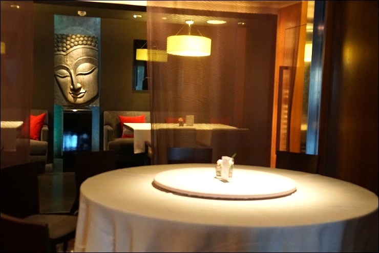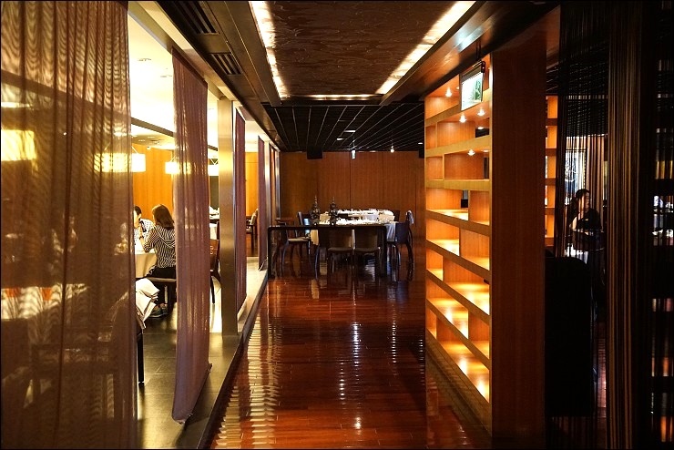 這裡的用餐空間佈置的很有味道,中間開放區燈光比較昏暗,營造神秘的fu~~兩側為包廂區,以隔簾跟活動式拉門簡單作區隔,包廂都有低消的限制,密閉包廂15,000元、半開放式包廂10,000元、窗邊低消5,000元。
