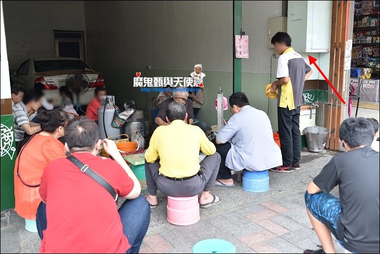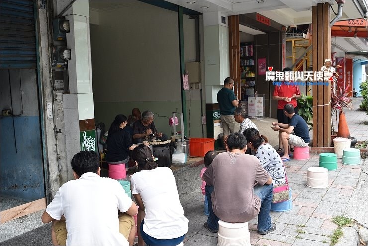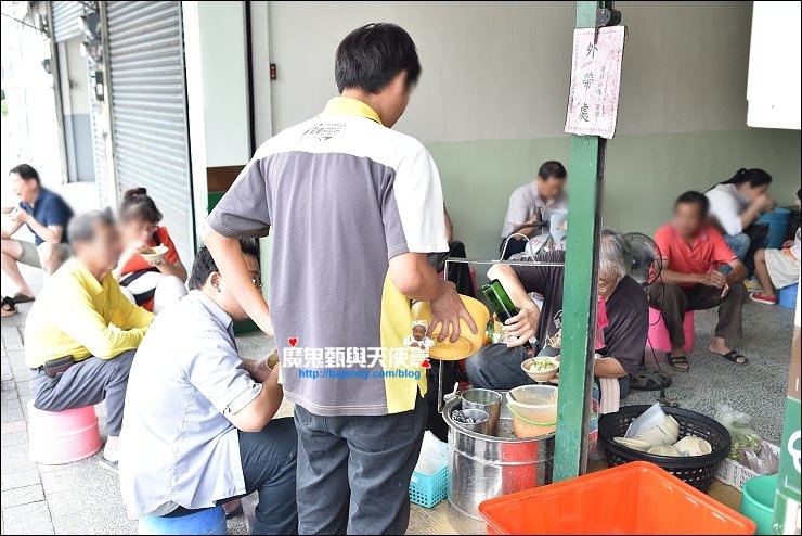車子開近白頭蔡肉圓就可以看得到攤頭一堆人,每個人都坐在塑膠板凳上低頭吃肉圓,感覺克難又有特色。