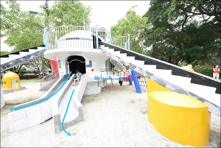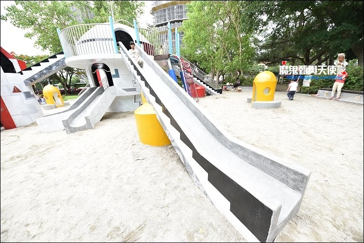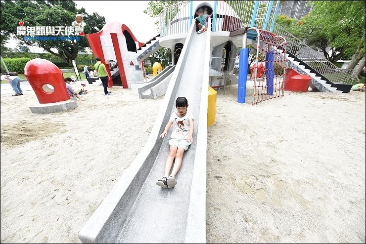 《大台北免費特色溜滑梯》被沙坑大包圍的太空堡壘免費溜滑梯+美心手工包子野餐趣+萬華青年公園一日遊!