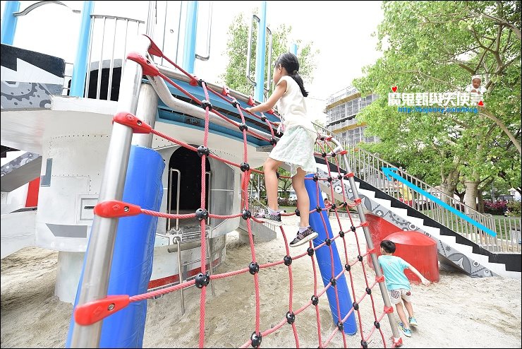 這裡有二座大型溜滑梯和大沙坑,盪鞦韆二座分成6歲以下和6~12歲適用,台北市的公園的經費真的很足,不過這都不是野馬妹的主要目標。