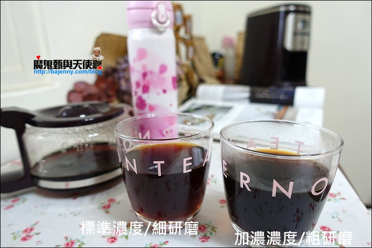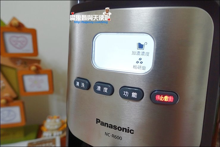 可以自行設定濃淡粗細,功能鍵可設定粗研磨或細研磨,鳥大哥跟阿弟爸喜歡喝濃,我個人喜歡淡一點,不同口味都可以滿足。早上起床先去咖啡機打個招呼手指動幾下,刷牙洗臉換好衣服後,客廳飄散著咖啡香,五分鐘現磨現煮的咖啡已完成,新鮮便利又快速。對了,咖啡機啟動中會閃紅燈,若是失憶症上身去打開上蓋,機器會停止操作,若是手癢不小心途中按到停止鍵,再按一次啟動鍵就會接續剛才的程序。