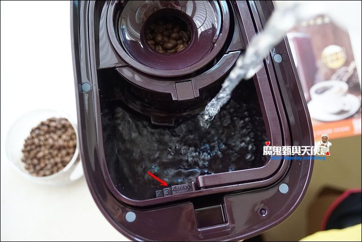 使用專用量匙依建議比例放入咖啡豆/粉,再加入冷水到水箱盒,階梯式顯示加水刻度很好辨識,不容易手滑加過量,看要煮幾杯咖啡就加多少水,一次最多煮四杯。