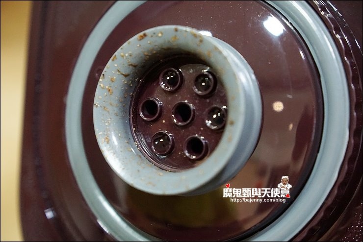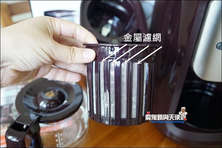 這台咖啡機使用全方位的刀盤,上勾弧形刀片可以把豆子磨的更均勻,而且咖啡機有兩層金屬濾網,一來較使用濾紙來的環保,更重要的是金屬濾網可以保有咖啡的油脂,咖啡喝起來很醇厚。