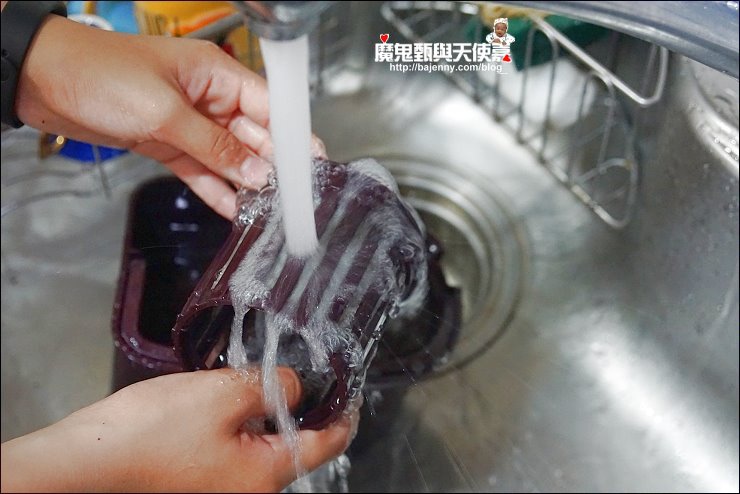 清洗很簡單,把咖啡渣都先倒到盤子上,再沖水清洗,金屬濾網用刷子刷一刷,另外滴漏蓋也要拆下來洗,洗完晒乾就好。