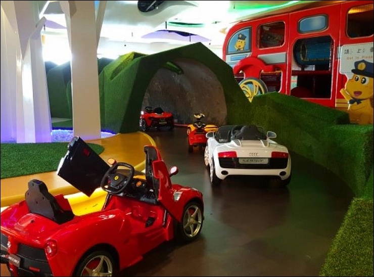 雖然只能小小的繞圈圈,但飯店還特別設計了草坪涵洞,讓小朋友多點開超跑過山洞的樂趣,想來這裡開車,應該跟雪山隧道一樣,平日來比較不會塞車塞人喔!