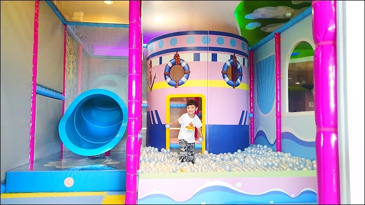 人工草坪和攀岩場都很適合小朋友爬上爬下,消耗用不完的精力!還可以玩躲貓貓的遊戲,只是建議家長要在附近幫忙注意遊戲禮儀、秩序和安全。差點忘了進入Dino親子館不管大人小孩都要穿著襪子才能入場喔,如果沒有的話地下室聯誼會有得買。