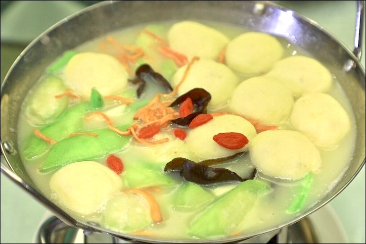 這道鮮蟲草花濃湯絲瓜浸魚腐本人也激推!豆腐加魚肉炸過再冰鎮,口感超嫩,浸在鮮甜濃郁的絲瓜湯裡更為順口!