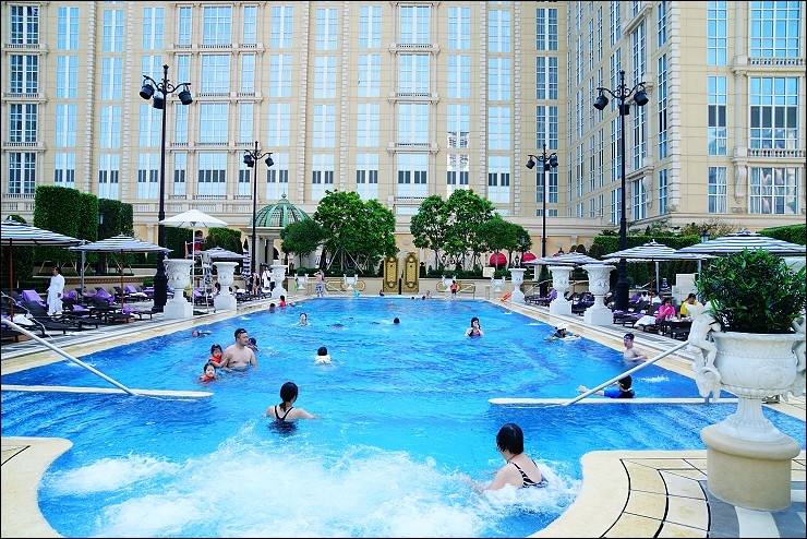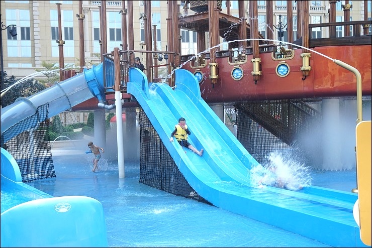 如果不想另外付錢,酒店也有免付費的泳池可以玩水,除了1.2米深的溫水游泳池還有3個按摩池及水中日光躺椅泳池。