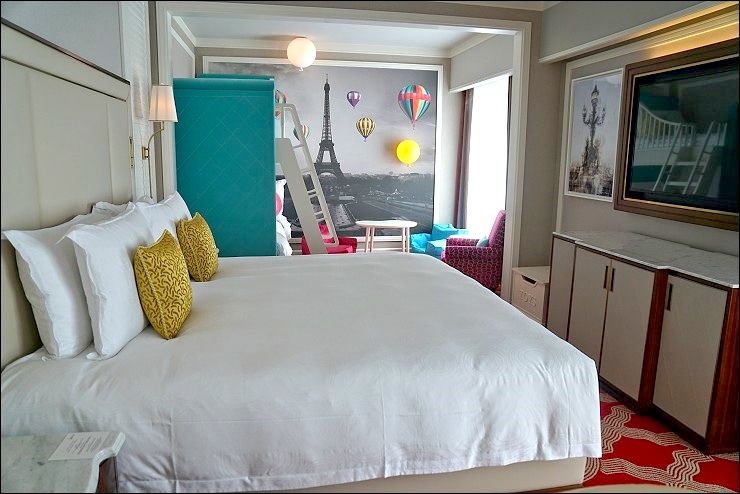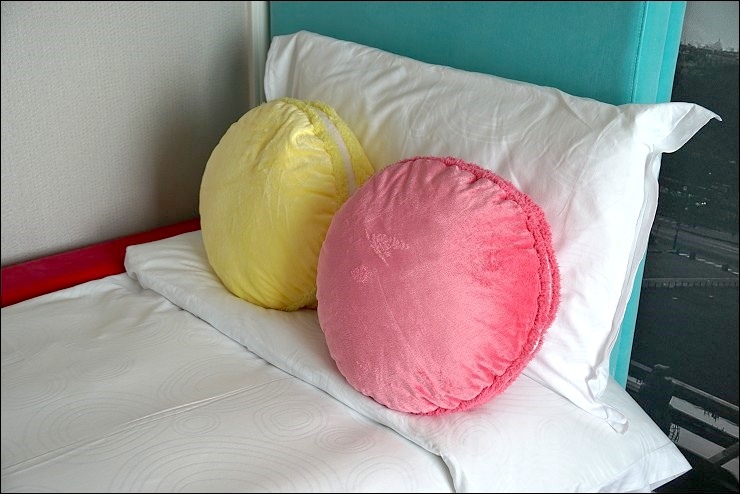 這是巴黎人很受歡迎的親子房,兒童是採上下鋪的方式,還配了可愛的馬卡龍抱枕跟氣球燈,營造出很歡樂度假的氣氛。