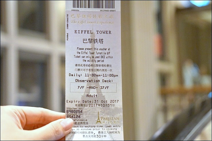 地點:可從巴黎人購物中心5樓(巴黎鐵塔紀念品商店進入主入口 開放時間)