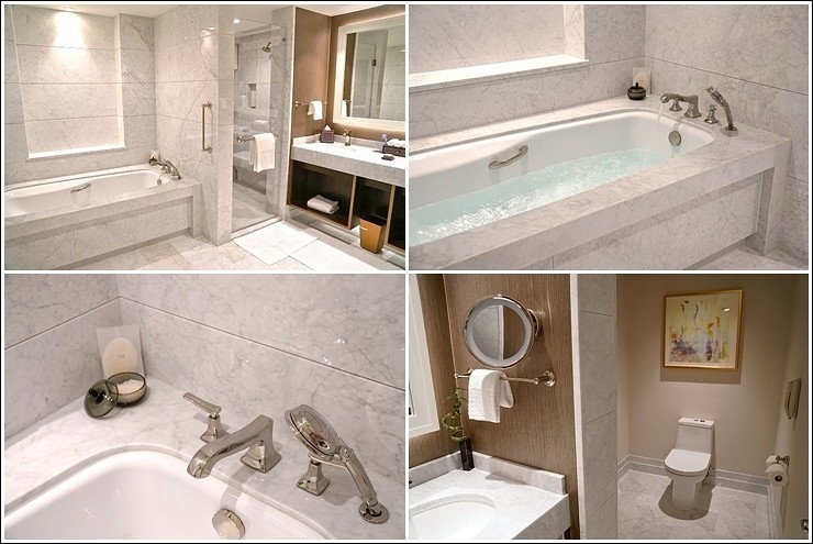 浴室也好大一間,有浴鹽可以泡澡,我這天終於撥了些時間進行泡澡,不然回房拍完房間只想躺在床上一動也不動,高級飯店備有萬用插座及USB插槽,不需要帶轉換插頭來。