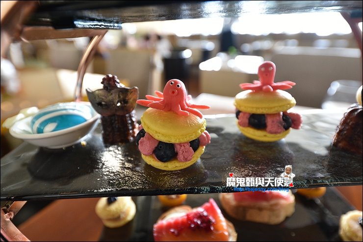 今年暑假的Venezia水之都英式下午茶,內容物有鯨艷花海(蝶豆花凍+優格+水晶花凍三色凍飲)、人魚之森、珊瑚島、海洋之心、威尼斯戀人、天使之鈴可麗露、章魚派對馬卡龍、水中花鹹點造型、裏海珍珠魚子醬薄餅、鮭航法國麵包、亞特蘭提斯溶岩巧克力塔,都帶著可愛的海洋氣息。