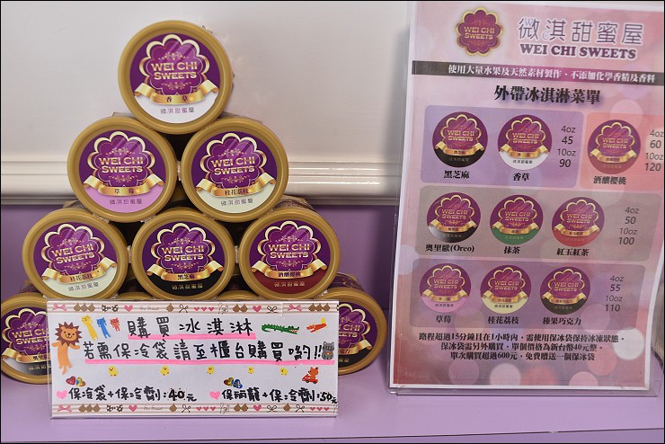 微淇的東西幾乎都要現吃,這裡可外帶的大概只有盒裝冰淇淋了...