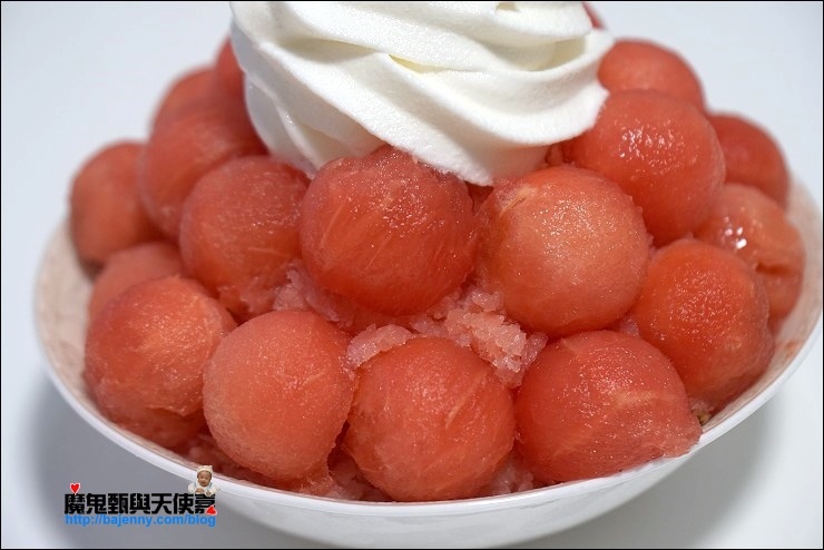 再來要介紹很費工的西瓜雪花冰,這也是最近冰品店很流行的呈現方式!絕對要稱讚強哥靈機一動神來一筆的牛奶霜淇淋!因為西瓜很冰,加了牛奶霜淇淋可以中和冰度,而且霜淇淋這時享用會感覺特別濃醇香喔~~
