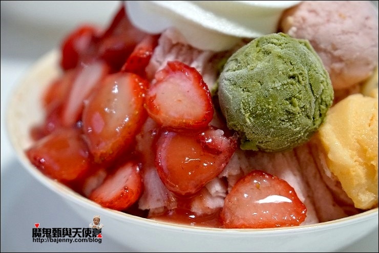 強哥說本來去年夏天就要推出新品,但因為一些事延宕到今年,一次滿足店長推薦的冰紛雪花冰有三種口味可以選(西瓜/草莓/芒果),這盤基本上就是水果雪花冰+多種口味冰淇淋+牛奶霜淇淋的三種無敵組合。