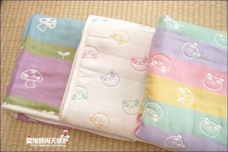 接洽的窗口很認真,一口氣寄來很多競品讓我比較,平平都是標榜日本製的六重紗,但作法略有差異,所以造成在柔軟度、花色及厚薄度都是不同的。BEBE-STYLE六重紗被特別改良過,被子紗較薄,也使用適合的薄包邊,使得整體更為薄軟透氣,並有品質保證的三河木棉標章;在日本紗布被是標榜四季使用,因為他們冬天會開暖氣,小孩在室內穿防踢背心加上紗布被就夠了,台灣則是春夏秋三季較為適合(但其實現在冬天也越來越不冷了),由於製作上太過費工致使產能稀少,通常秋冬開始販售到春夏天就沒什麼量了,因為日本內地還是包了80%以上的生產線,像新款就是日本原本六月要給貨,到現在布還在織...,交期最長曾延誤九個月之多!所以本次團購的量極為有限!!下次真不知道是何時了