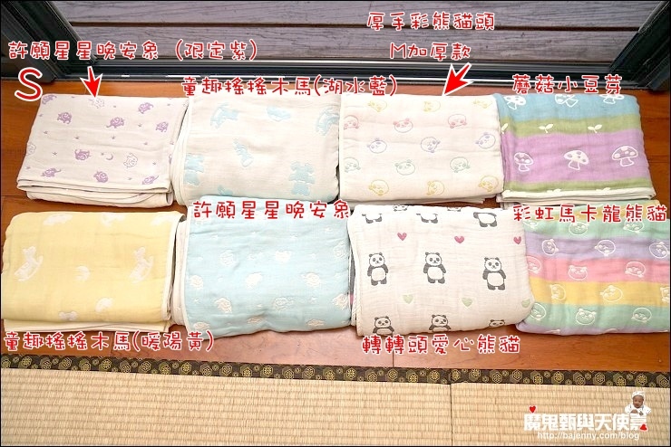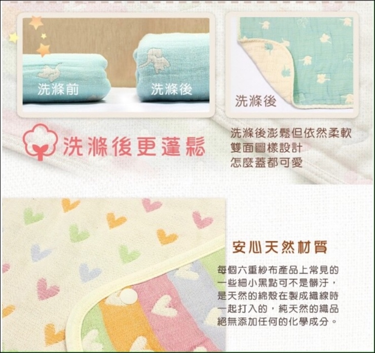 預算有限的朋友,這次可以先買一兩條試試,大家反應熱烈的話,過一二個月防踢背心那時候也會有貨,可以再幫全家人一次補齊到位。本次特別爭取到二條S的紗布被當作下單分享禮,因為數量不多,想要也買不到喔。