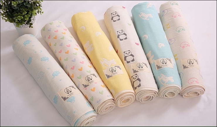 使用日本製立體釦袋,很好收納,紗布被跟一般的寢具商品不同,他是織布,圖案是織成的,不是大量油墨印刷,花色款式多,也因為是織法所以每個花色平均一次生產的量要將近一千件的量,不然擠不上穩定的生產線,所以一般六重紗的款式真的很難看到那麼多種獨家款。