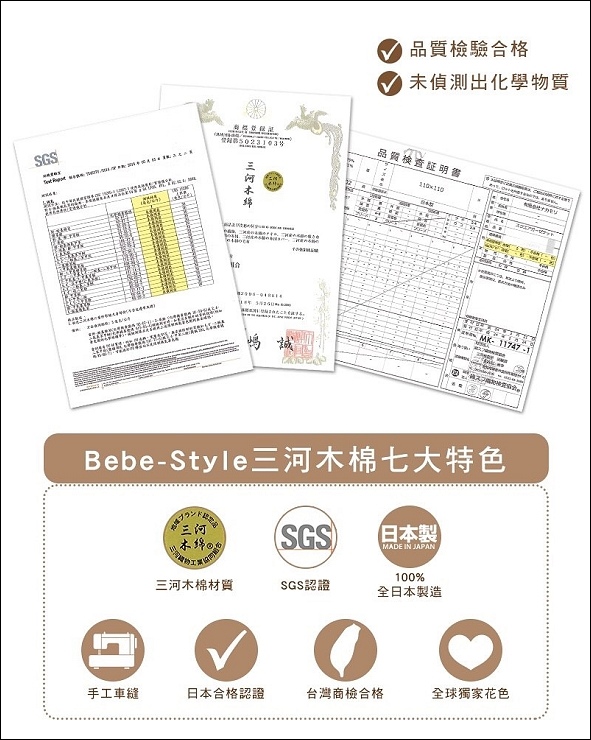 本次配合的紗布被所有製造機台及布都是日本的,從在日本織成布、然後預洗、車邊、品檢、包裝等程序都在日本完成,100%日本製,再進口回台灣販售;這跟部分業者為了節省成本,包邊是台灣加工縫製,或是跟工廠買公版花色餘料(這些餘料沒有產地跟紗線的來源證明)是不同的。