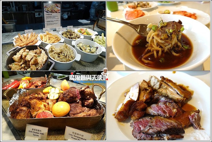 烤物、炸物、現點現切烤雞肉、低溫烤牛排、叉燒肉及香腸,還有蒙古烤肉及牛肉麵,都是現點現做,要記得拿桌上的桌排來,可以安心在座位繼續吃,牛肉麵或蒙古烤肉做好服務生會幫妳送上桌!這些自助吧加上水果、蛋糕甜點及哈根達斯淇淋就很夠吃了。