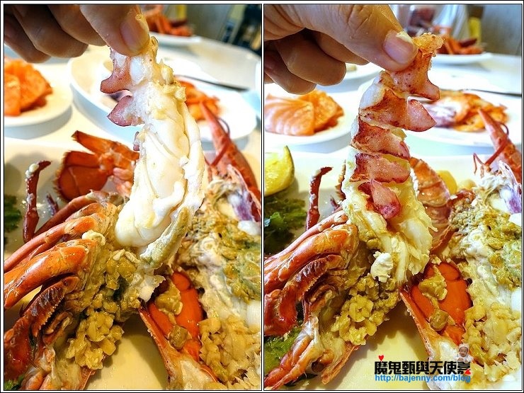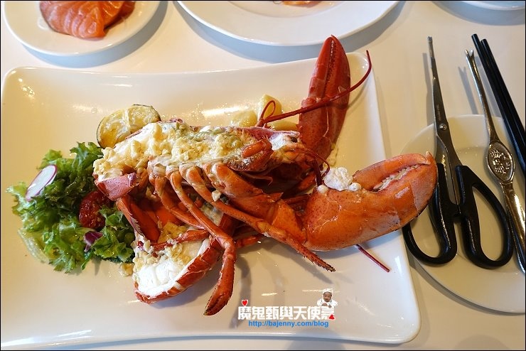 我使用的餐券是台北六福萬怡酒店敘日餐廳平日午晚餐單人券 主餐+Buffet吃到飽:https://goo.gl/U9ZZas,主餐有低溫油封肉汁帶骨豬、爐烤赤味噌清酒加志魚、美國頂Prime級熟成沙朗牛波擇一,看出餐沙朗牛是熱選,我跟友人是超愛海鮮的海女一族,加價300元升級波士頓活龍蝦,吼,一人一隻龍蝦爽度破表!