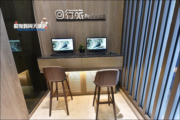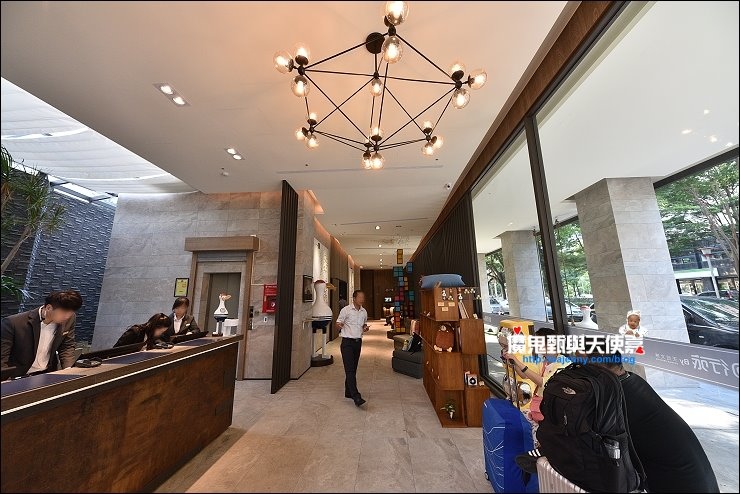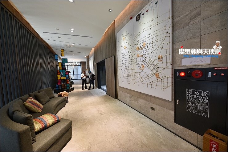 大廳櫃台報到,弧形沙發看起來很舒適,牆面還有大型的週邊地圖,晚上覓食可以先在這裡做路線規劃。對了,天成文旅有專屬地下室車位,不過車位不多,建議訂房時預先告知保留車位。