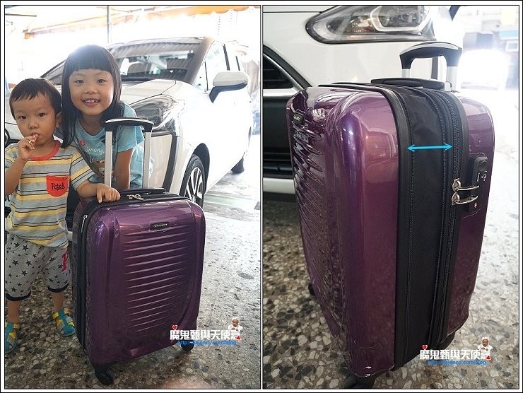 順便跟大家分享我個人的旅行小物,讓旅行事半功倍,玩的更盡興!出門旅行一咖好推的行李箱可以帶你上天堂!以前我很喜歡帶29吋出門,買超多戰利品都裝的下!現在出遊走精簡路線,反而愛上輕巧的登機箱,國內或是國外短天期的輕旅行都很適合,Samsonite新秀麗這款硬殼登機箱流線外型亮麗,而且它更吸引我的地方是它竟然可以變大!!拉鏈一放可以加寬約五公分的高度,買些戰利品或伴手禮也能輕鬆裝進行李箱。