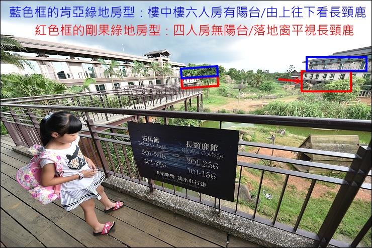 肯亞綠地四~六人房型在二樓樓層較高,距離長頸鹿和斑馬比較遠,房間裡也看得到動物,要近距離看長頸鹿需要走出去陽台從上往下看,不像剛果綠地是近距離接觸,大家可以依自己家庭人口數來選擇,只要是綠地房型都看得到長頸鹿和斑馬,但肯亞跟長頸鹿的距離比較遠,視野是往上往下。還有網友說肯亞綠地房型會有動物糞便等氣味問題,我們上次住是沒什麼感覺啦!