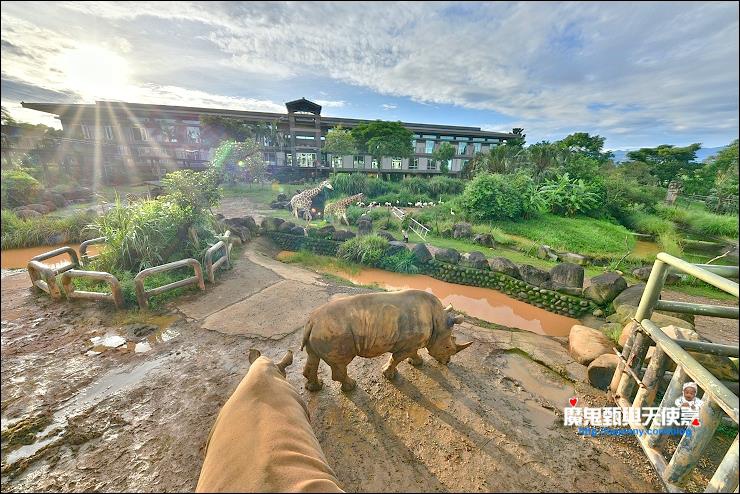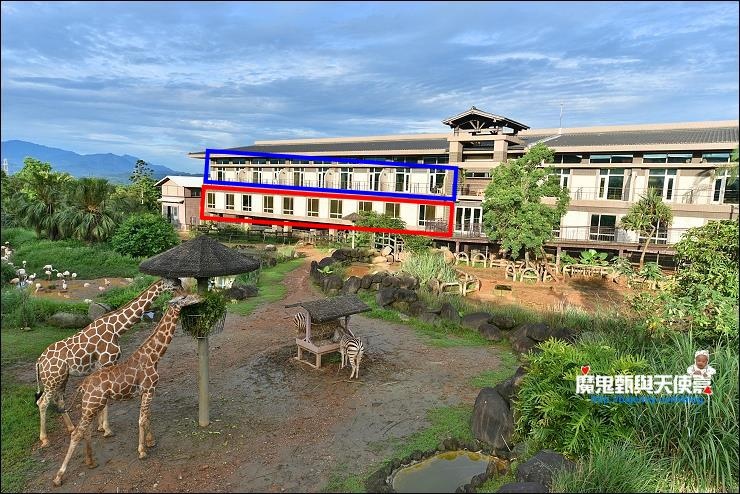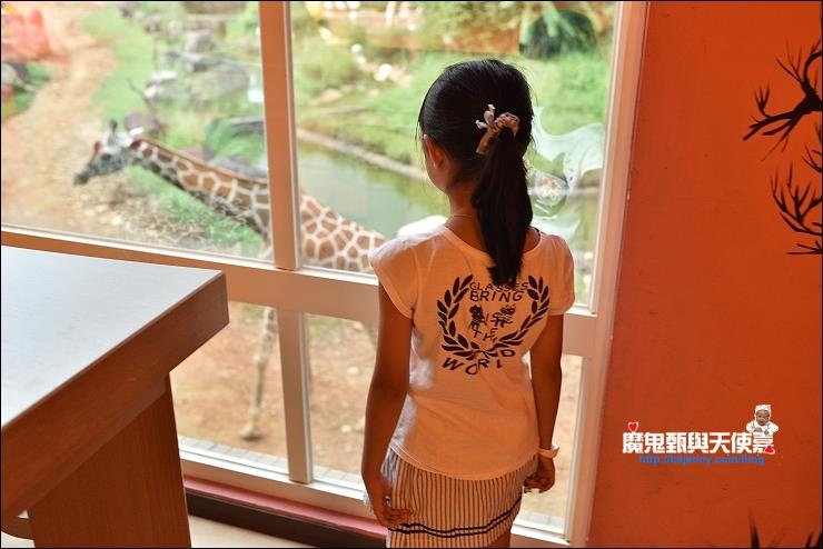 我們這天住的剛果綠地是飯店行銷說網友指名No.1最熱門搶手的房型,樓層較低落地窗看出去就是動物園,但窗不能外推,可以在房間吹冷氣看動物,因為高度剛好就是長頸鹿的頭部,聽說長頸鹿會舔窗戶MORNING CALL很好玩,不過還是要看運氣。