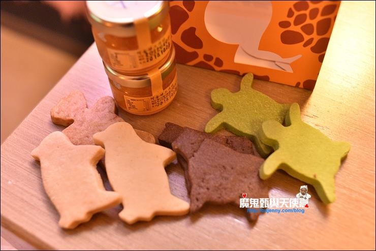茶包、餅乾和飲用水,動物造型餅乾允嘉兄妹都愛吃(大廳一樓販賣店都有賣),有很多不同種顏色和造型,像是綠色抹茶海龜和白色企鵝餅乾,