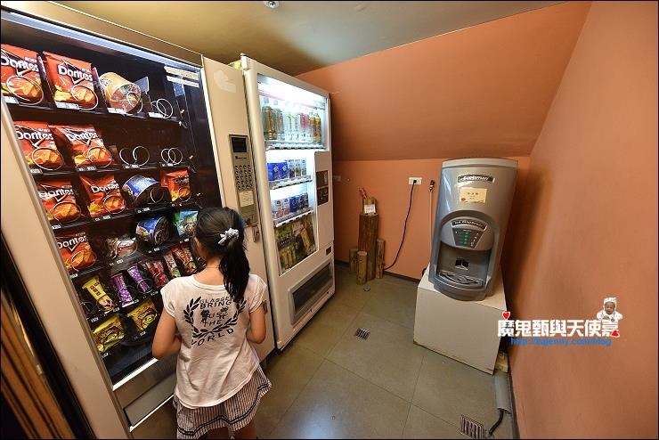 因為就住在六福村園區內,附近當然沒小7,如果沒吃飽晚上肚子餓,又不想開車出飯店覓食,樓梯間有提供冰塊、飲料、零食和泡麵販賣機可以擋一下,記得自備零錢。