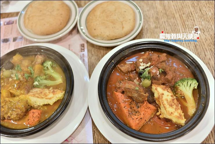 好望角目前主打塔吉摩洛哥料理配非洲餅套餐,含前菜、沙拉、濃湯、塔吉摩洛哥料理主餐配非洲餅、水果甜點和現打果汁。有牛腩、雞腿和魚排三種主餐,我們點的牛腩和雞腿比較不符合我們家的口味(感覺六福莊的餐點還有努力空間),甜點蛋糕是長頸鹿和斑馬紋路,還蠻有梗的!