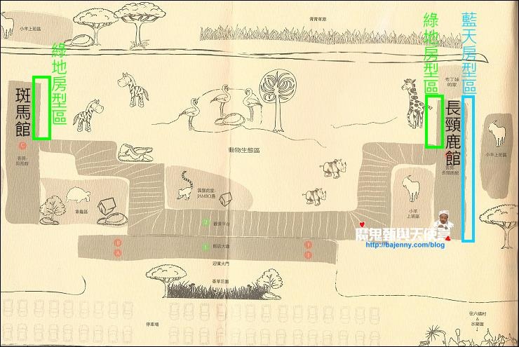 長頸鹿館的剛果綠地房有幾間被圍欄擋住(↑↑上圖箭頭處↑↑),長頸鹿無法舔窗,斑馬館的剛果綠地好像也有少數幾間被大石頭擋住視野,不過長頸鹿還是可以靠近舔窗(如果想舔的話啦~~)。